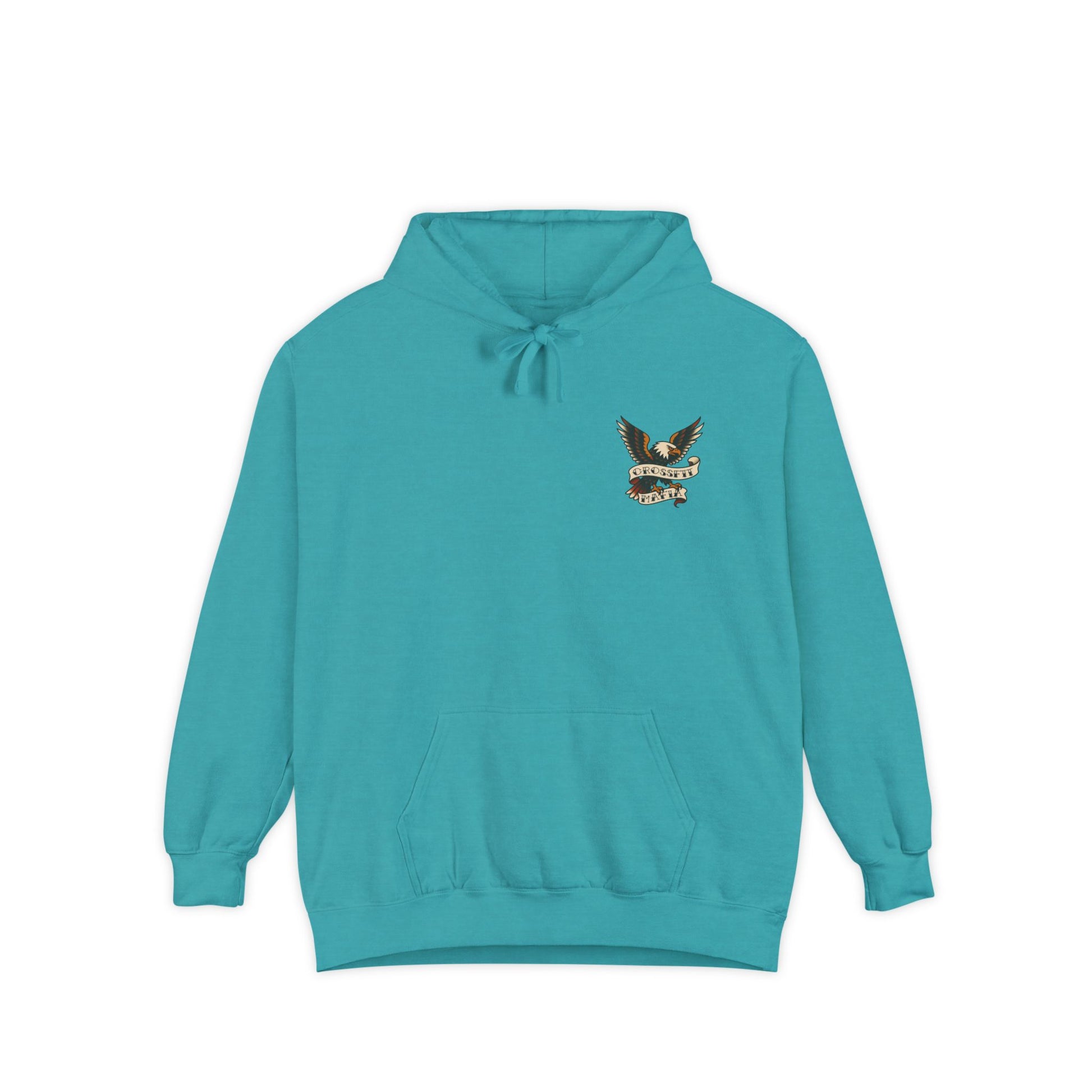 Discover unmatched comfort and style with this unisex, garment-dye hoodie. Made with 80% ring-spun cotton and 20% polyester, this hoodie delivers incredible comfort for any casual setting. Each hoodie features a 3-end, garment-dyed, ring-spun fleece with a 100% cotton face, while the hood is jersey-lined with a color-matched flat cord. What's more, these hoodies sport a rolled-forward shoulder and a back neck patch.